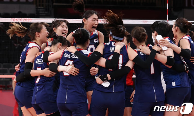 / 여자배구 한일전 : 사진여자배구대표팀 '한일전 승리 수고하셨어요' - 조선일보 _ 오늘 한일전 승리하고 8강 진출한 여자배구 대표팀 단체사진 367.